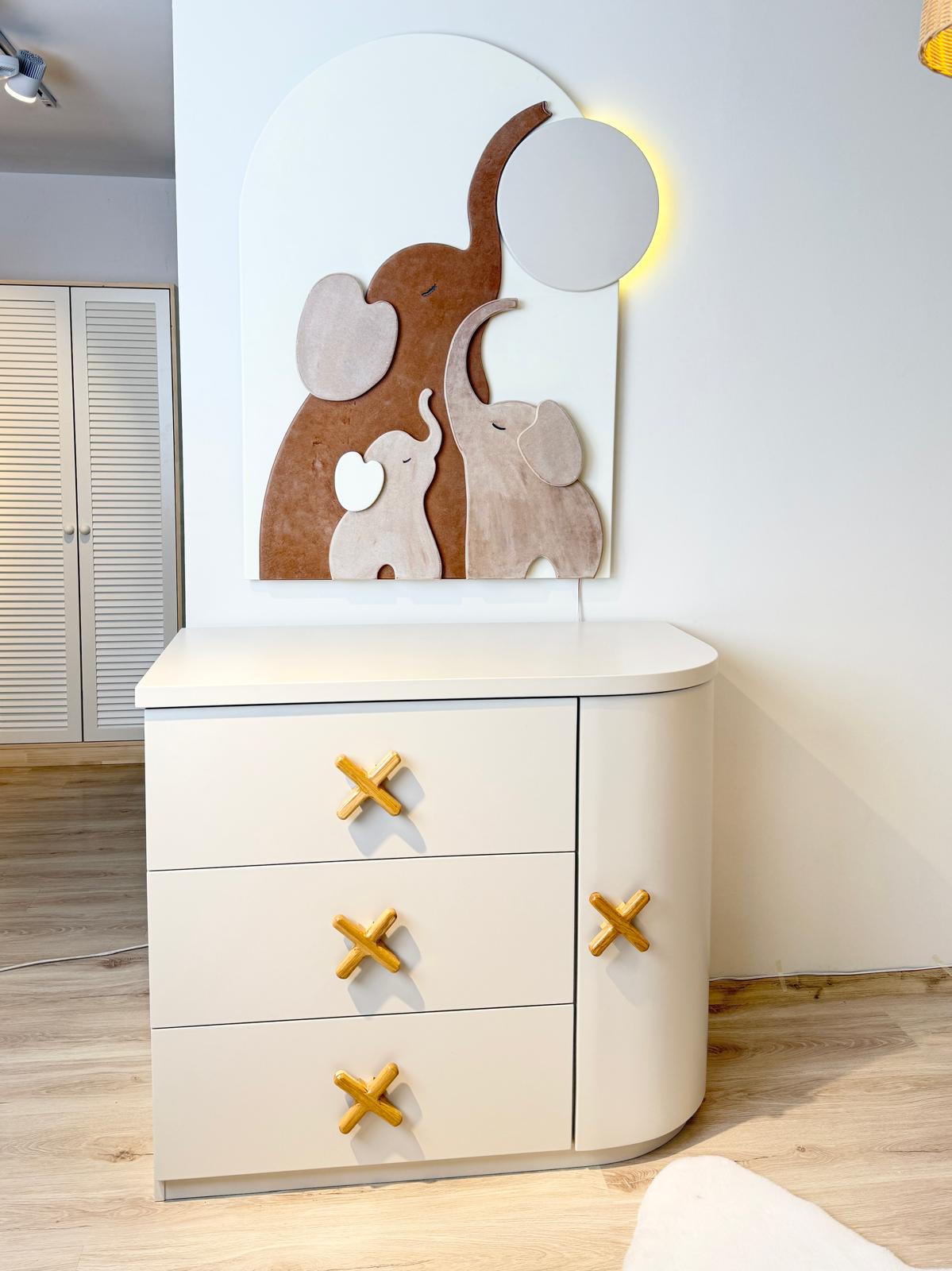 Bebeğiniz için en iyisi düşünülerek tasarlanan Fil Dekoratif Duvar Aydınlatması, yumuşak arkadan aydınlatmasıyla odada sıcak ve güvenli bir atmosfer oluştururken, anne–bebek bağını simgeleyen tasarımıyla güçlü bir dekor etkisi yaratır. Hem gece ışığı hem de duvar sanatı olarak kullanılabilen bu özel parça, bebek odasına huzur, estetik ve duygusal bir dokunuş katar. Modern odalar için hem işlevsel hem koleksiyon niteliğinde bir tamamlayıcıdır.